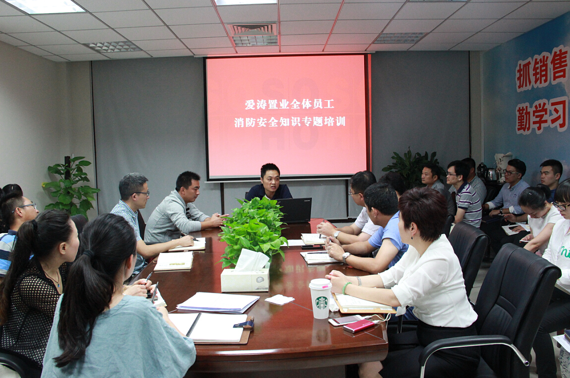 為進一步加強全體員工的消防安全意識,普及消防安全知識,推進公司消防安全宣傳工作,9月16日,愛濤置業(yè)公司邀請南京市消防支隊教官,在公司會議室舉辦消防安全培訓講座。愛濤置業(yè)公司、弘文置業(yè)公司全體員工參加培訓。