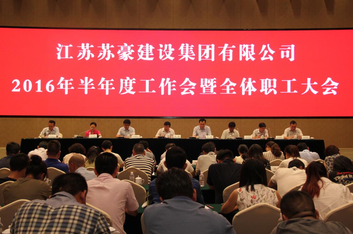 8月3日,建設(shè)集團(tuán)召開(kāi)2016年半年度工作會(huì)暨全體職工大會(huì),總結(jié)上半年工作,部署下半年目標(biāo)任務(wù),并表決通過(guò)《江蘇蘇豪建設(shè)集團(tuán)有限公司員工違規(guī)處分規(guī)定(試行)》。建設(shè)集團(tuán)領(lǐng)導(dǎo)班子、集團(tuán)本部及子公司全體員工參加會(huì)議。控股集團(tuán)副總裁、建設(shè)集團(tuán)黨委書(shū)記周謙出席會(huì)議并講話。孫新山總經(jīng)理主持會(huì)議,并傳達(dá)控股集團(tuán)上半年經(jīng)濟(jì)工作會(huì)議精神。
