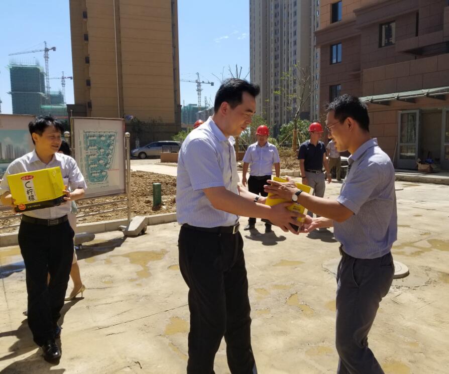 7月25日,建設集團董事長、黨委副書記周君、副總經(jīng)理張鋼平一行冒著近四十度的高溫前往溧水天岳城項目為員工送去清涼和關愛。周君董事長代表集團黨委、工會為員工們贈送了防暑降溫藥品和飲料等清涼物品。慰問活動結束后,周董事長聽取了項目進展情況匯報 并強調(diào),寧鎮(zhèn)區(qū)域當前的工作重點一是要圍繞集團下達的2017年經(jīng)營指標,做好房屋交付、清盤等收尾工作;二是要持續(xù)強化安全生產(chǎn)意識,徹底排查安全隱患,狠抓安全生產(chǎn)責任落實,確保各項工作穩(wěn)妥推進;三是各級領導干部和員工要有勇于擔當?shù)木?,做到守土有責、守土盡責。